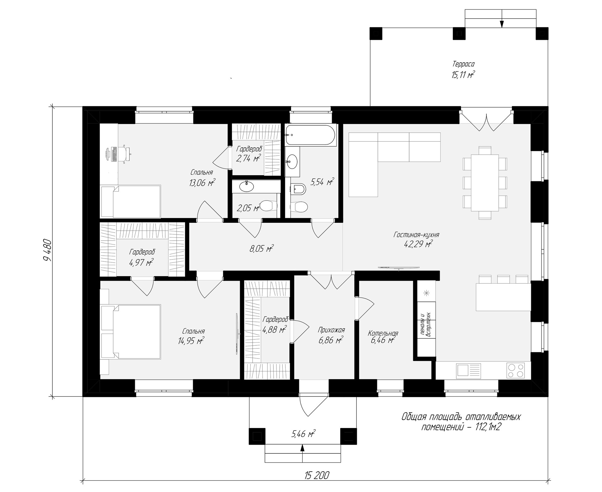 Фундамент, железобетонные полы, несущие стены, внутренние перегородки из силикатного полнотелого кирпича, перекрытия с утеплением и мембранами, кровля. Срок строительства 3 месяца