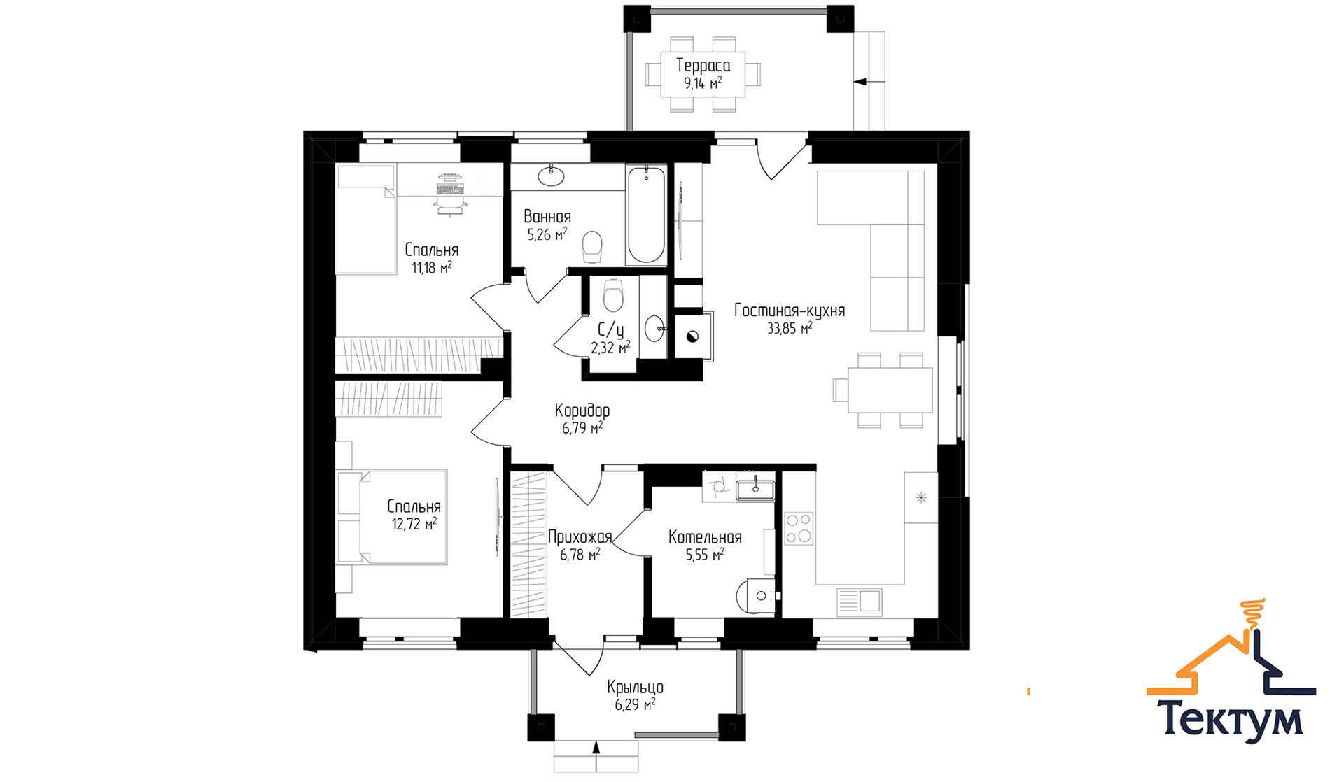 Фундамент, железобетонные полы, несущие стены, внутренние перегородки из силикатного полнотелого кирпича, перекрытия с утеплением и мембранами, кровля. Срок строительства 3 месяца