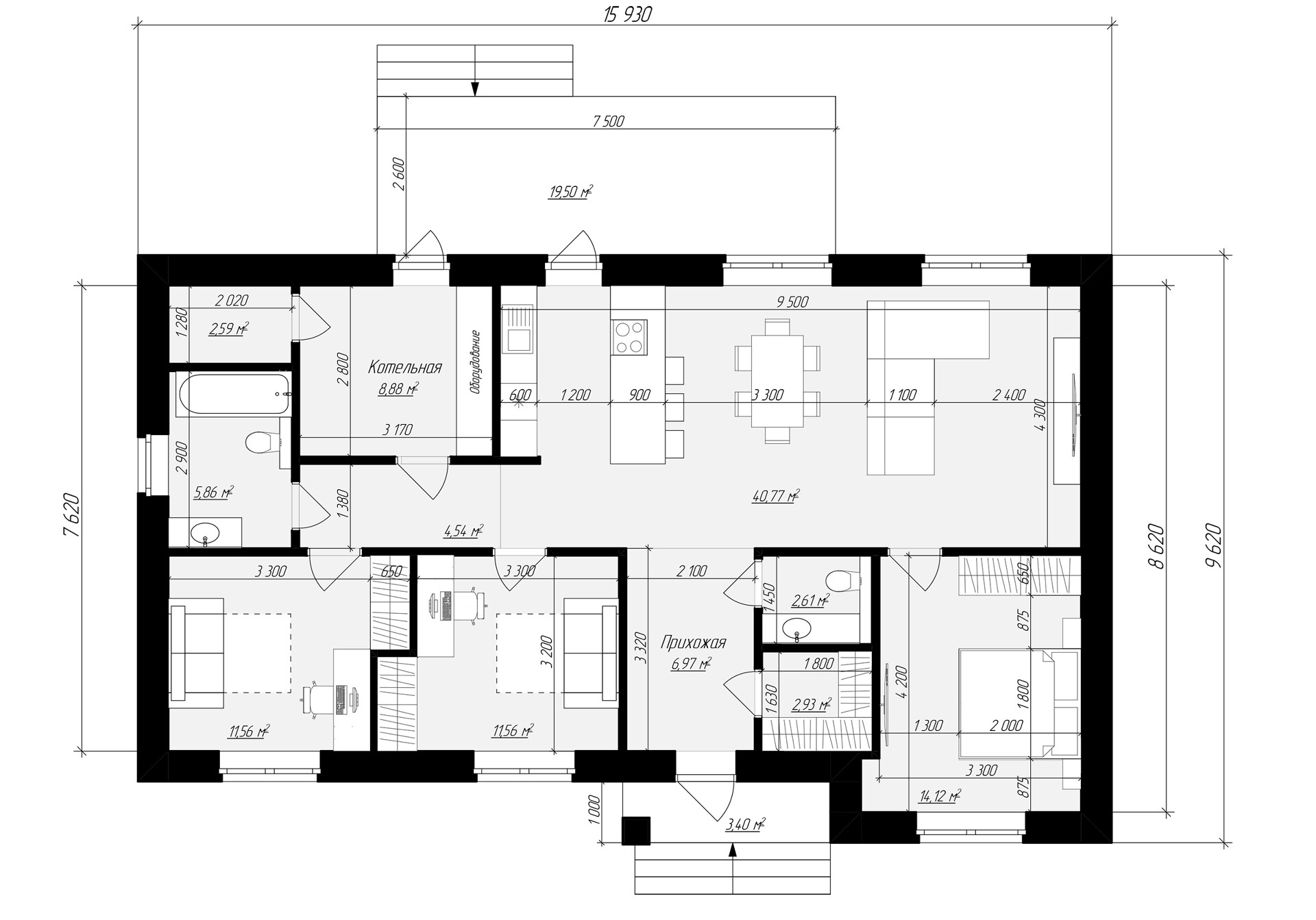 Отапливаемая площадь дома 113м2