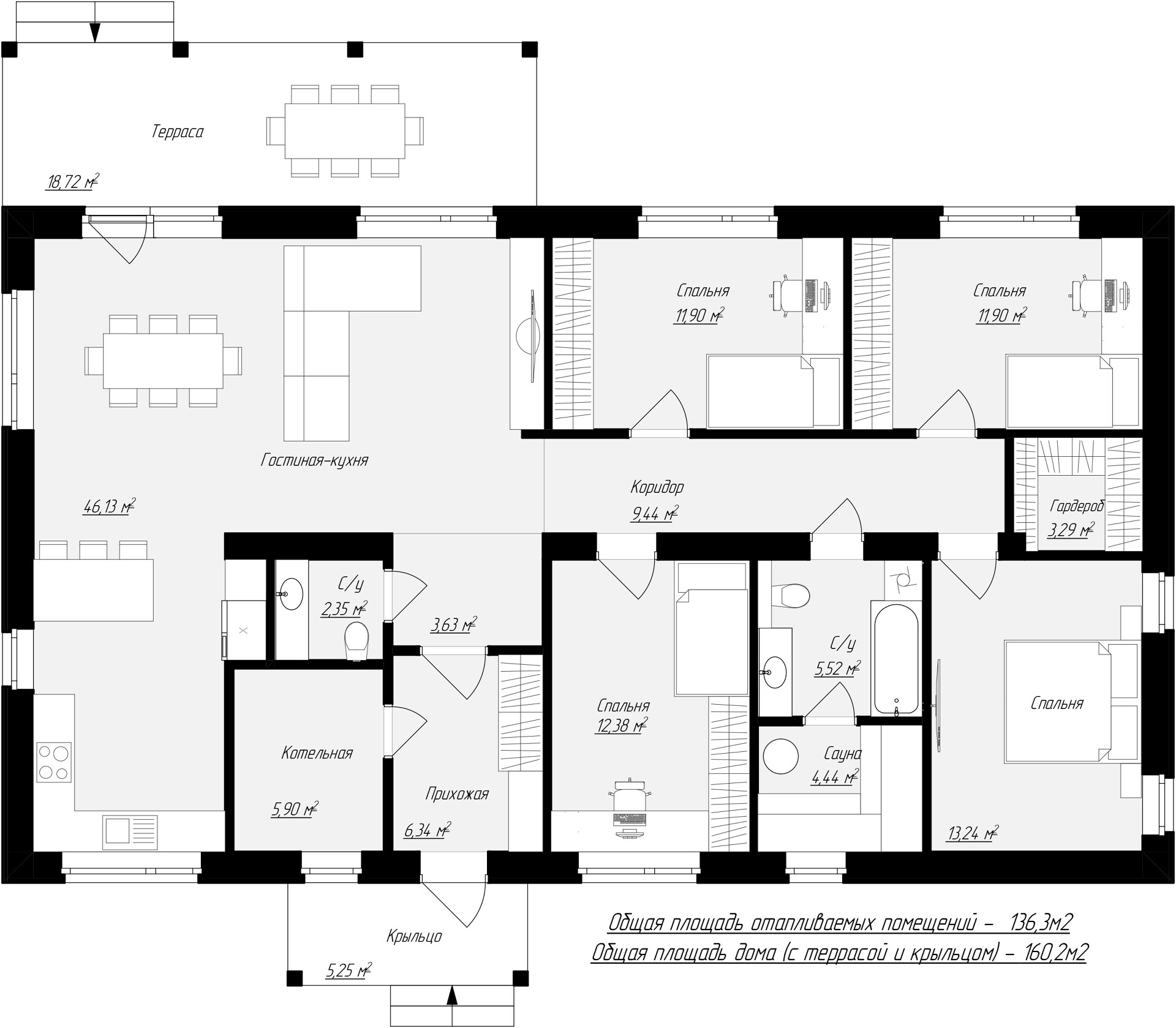 "КОРОБКА"+наружная отделка фасада, подшив кровли, водосточная система. Срок строительства 4 месяца